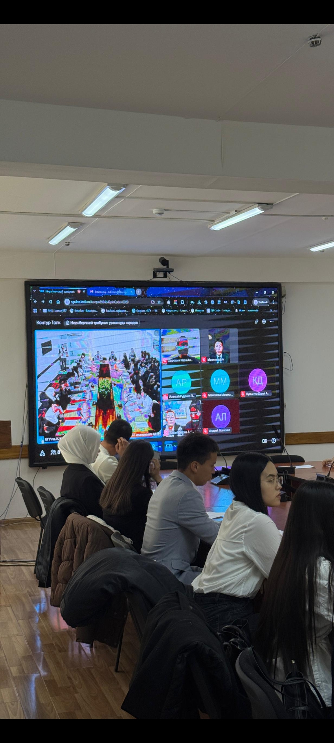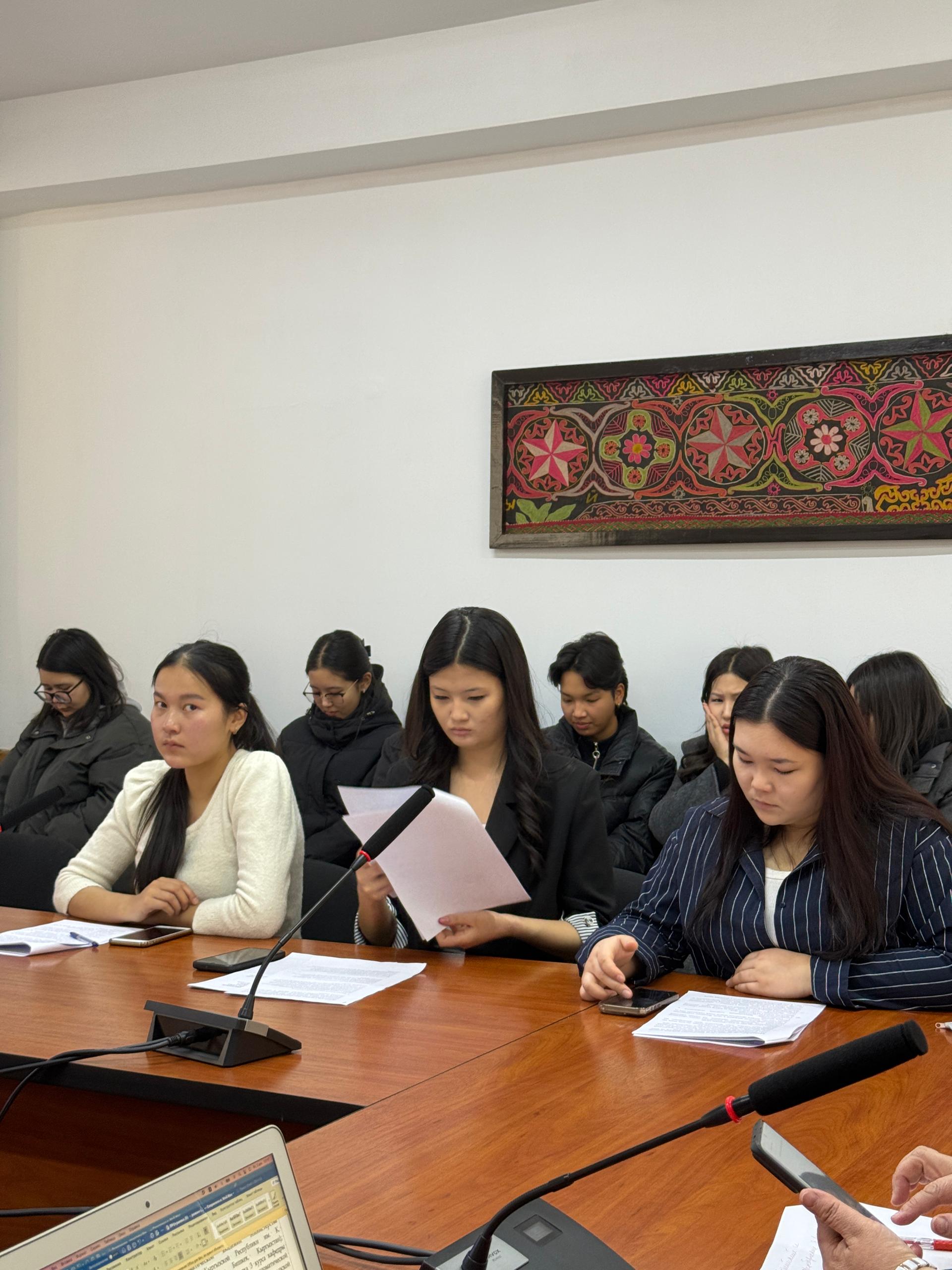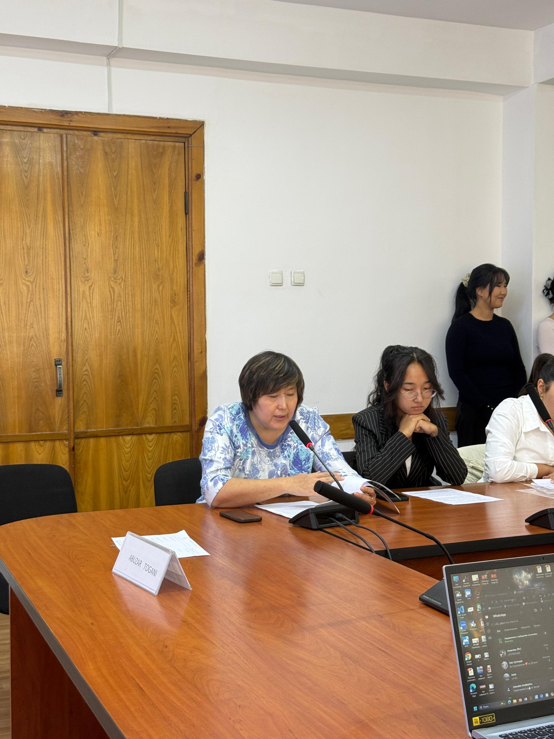 Круглый стол «Нюрнбергский «Суд народов» как первый международный трибунал» состоялся на базе Бишкекского государственного университета им. академика К.Карасаева. Модератором выступил Каныбек Кудаяров – и.о. доцента БГУ им. К. Карасаева, главный специалист Центра российских исследований Кыргызского национального университета им. Ж. Баласагына, научный сотрудник ИНИОН РАН, а также Айгуль Алибекова - и.о. доцента кафедры Международных отношений факультета Востоковедения и международных отношений Бишкекского государственного университета им. академика К. Карасаева.